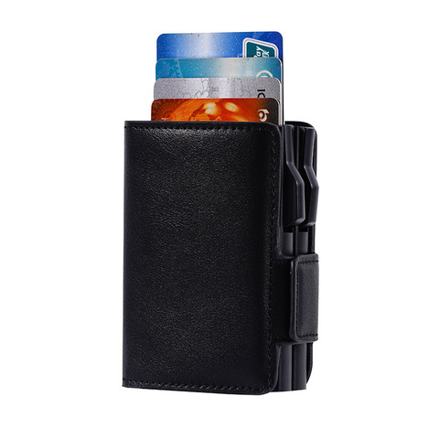 RFID блокирующие кожаные кошельки с карманом для монет или без него тонкий всплывающий металлический держатель для кредитных карт